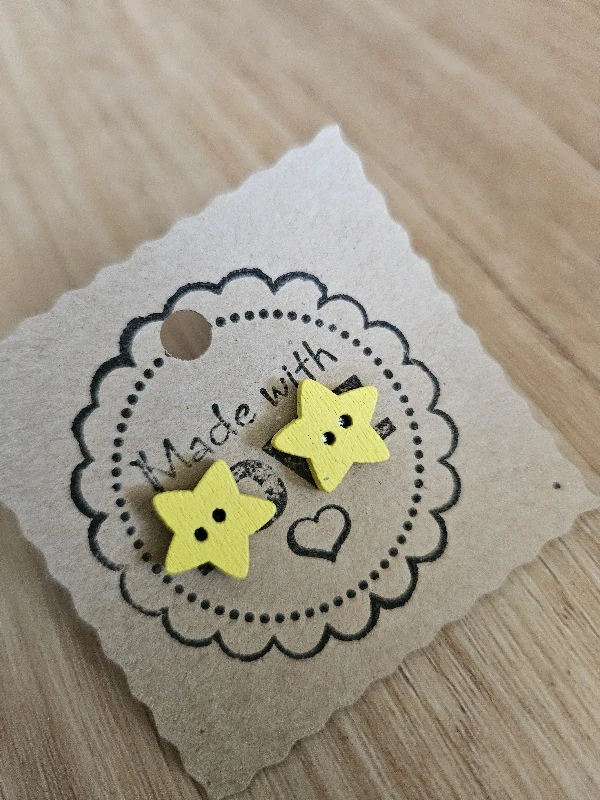 Objevte minimalistickou eleganci: Dřevěné knoflíkové náušnice hvězdičky :-)
