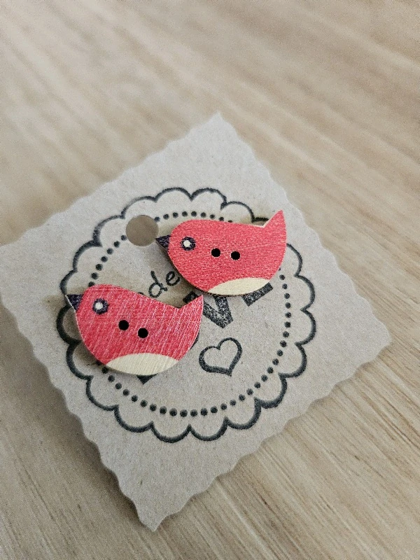Náušnice dřevěné, knoflikové, ptáčciSkladem 1 ks110 Kč/ ks