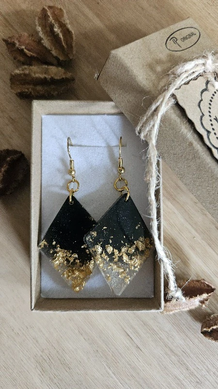 Náušnice z pryskyřice, třpytky zlaté