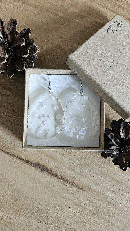 Výrazné náušnice z pryskyřice s třpytkami – ruční výroba, chirurgická ocel