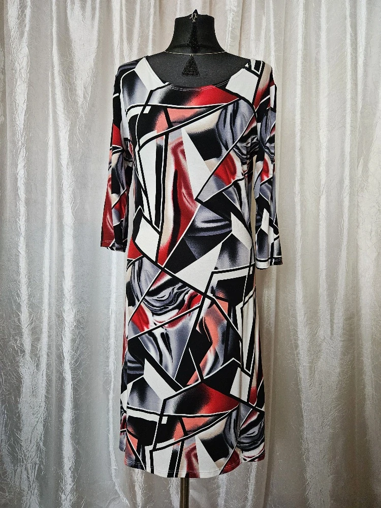Ručně šité úpletové šaty s kulatým výstřihem a rovným střihem s 3|4 rukávem.