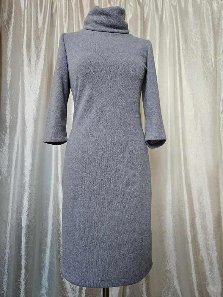 Elegantní dámské pletené šaty v nadčasové šedé barvě s pohodlným rolákem a rovným střihem, který lichotí postavě. Skvělé pro každodenní nošení i elegantnější příležitosti. Tento model je ručně navržený a šitý přímo mnou, takže existuje pouze jeden originál – nikdo jiný nebude mít stejné.