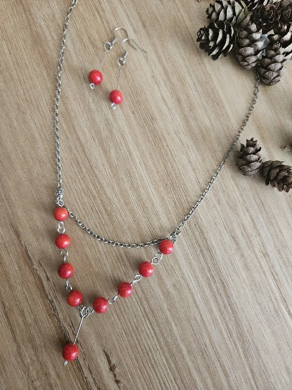 Souprava náhrdelníku a náušnic s červeným korálem.