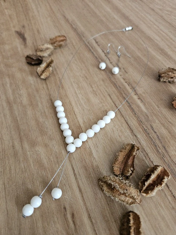 Hledáte šperk, který je zároveň klasický i moderní? Tato ručně vyrobená souprava z bílých korálků je přesně to, co potřebujete! Korálky jsou navlečené na pevném ocelovém lanku, což vytváří elegantní a nadčasový vzhled.