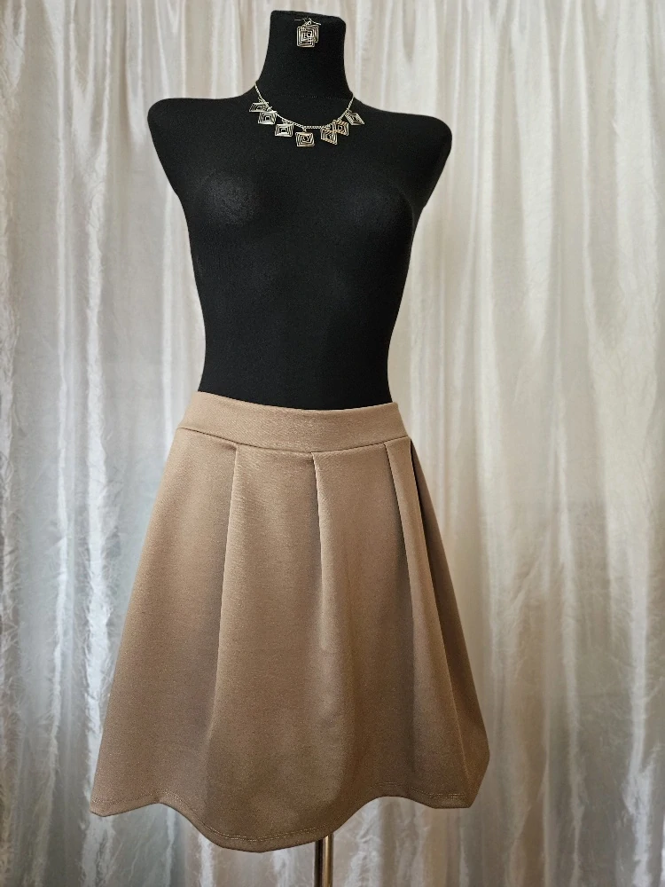 Ručně šitá úpletová sukně skládaná do pružného pasu, proto netlačí do břicha (při správné velikosti nezvýrazňuje špíčky na břiše)